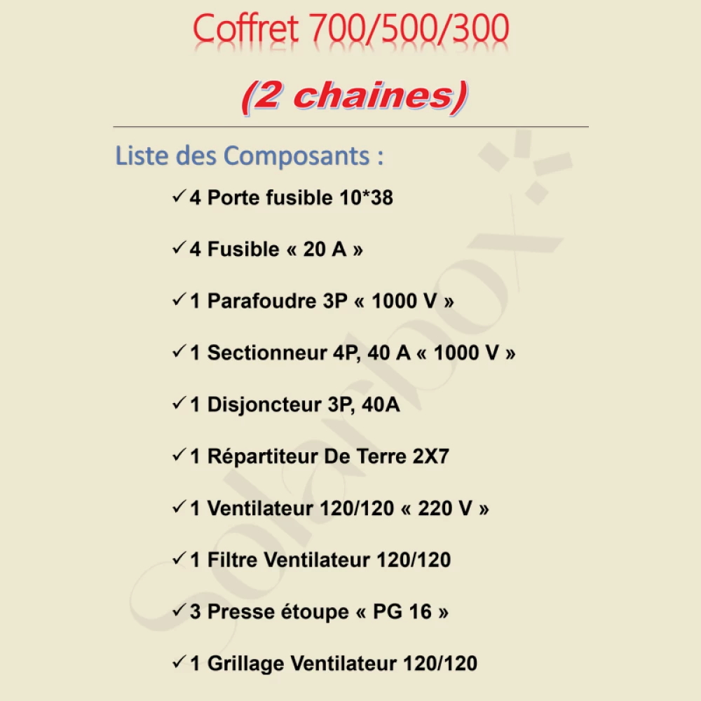 Le coffret précâblé : Est un boîtier métallique prêt à l’installation , Il intègre les composants nécessaires afin de simplifier le raccordement et garantir une mise en service rapide et fiable .
