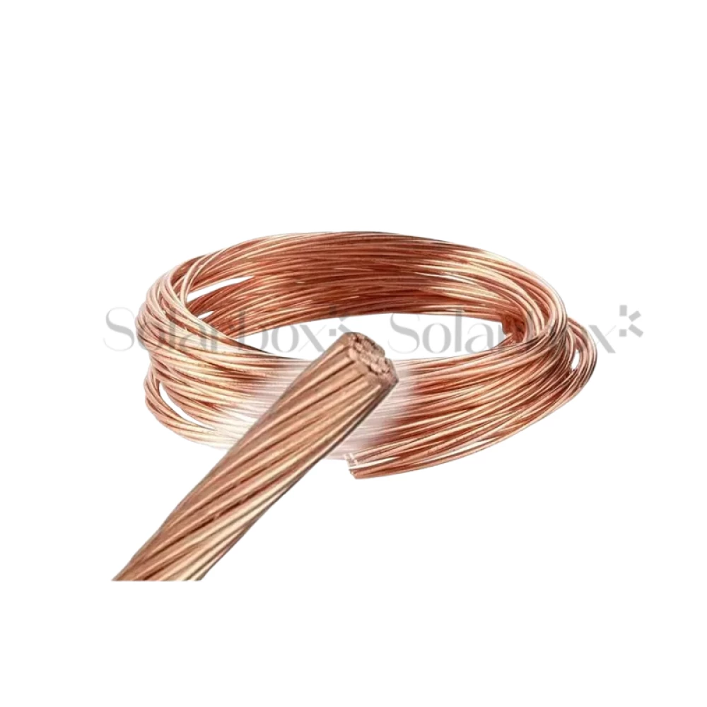 Câble cuivre nu : Conducteur en cuivre massif non isolé, utilisé pour la mise à la terre et la protection contre la foudre.